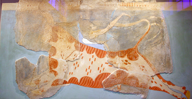 Η τέχνη της τοιχογραφίας εμφανίζεται στην μινωική Κρήτη και συνδέεται στενά με την αρχιτεκτονική των ανακτόρων. Η μεγάλη ζωγραφική είναι τέχνη επίσημη και εξασκείται από καλλιτέχνες που εργάζονται στην υπηρεσία του άνακτα. Τα θέματα προέρχονται από τον κόσμο της φύσης ή απεικονίζουν τις θρησκευτικές τελετουργίες της αυλής. Μετά την εγκατάσταση των Μυκηναίων στο τέλος του 15ου αιώνα π.Χ. στα ανάκτορα της Κνωσού στην Κρήτη και την ανέγερση των μυκηναϊκών ανακτόρων στις Μυκήνες, την Τίρυνθα, τη Θήβα και την Πύλο, η τέχνη της τοιχογραφίας διαδίδεται στην κυρίως Ελλάδα. Ο ζωγράφος χρησιμοποιεί φυσικά, γήινα χρώματα, κυρίως από οξείδια μετάλλων, για τη βαφή που απλώνεται σε υγρό ασβεστοκονίαμα